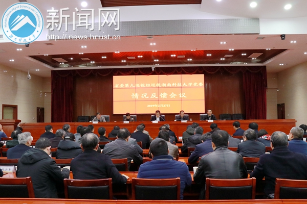 根据省委统一安排,2019年2月27日,省委第九巡视组向学校党委反馈巡视情况。省监委委员熊文辉出席反馈会议,传达了省委书记、省人大常委会主任杜家毫关于巡视工作的重要讲话精神,对抓好巡视整改工作提出要求。省委第九巡视组组长高飞跃代表巡视组反馈巡视情况。我校党委书记刘德顺主持反馈会议并作表态讲话。省委第九巡视组副组长陈烽、彭亮出席会议。