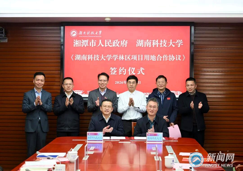 1月13日,湘潭市人民政府与我校学林区项目签约仪式举行。湘潭市委书记胡贺波,我校党委书记蒋丽忠见证签约并讲话。市委副书记、市长李永亮,校党委委员、副校长王卫军、余伟健、邓学源,市领导丁诚、陈爱民参加。
