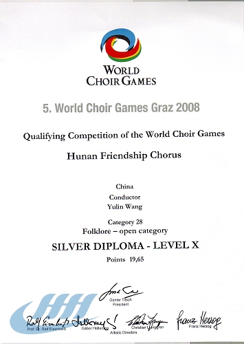 此次比赛有来自世界93个国家的441支合唱团队报名参加。数量众多的合唱团队伴随着民间的舞蹈以及铜管乐队的伴奏,向世界人民展示了一届独特的不同文化的音乐盛会。湖南友好合唱团此次比赛演唱了唐勇强改编的云南民歌《跳月》、湖南民歌《花大姐》,在钢琴伴奏中巧妙地加入了民族乐器竹笛和芦笙,配以艳丽的民族服饰,载歌载舞的灵活的演唱形式和队型变化,动听的旋律、优美的和声打动了在场的评委和观众。中央电视台、《音乐周报》和《潇湘晨报》先后对此次比赛进行过报道。