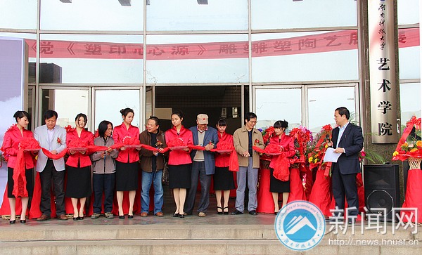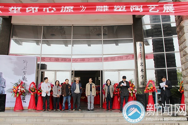 4月16日上午,郑先觉《塑印心源》雕塑陶艺展开幕式在我校艺术学院前坪举行。我校副校长朱川曲教授,湖南省美协副主席、我校艺术学院院长杨国平教授出席了开幕式,莅临此次开幕式的嘉宾还有湘潭市美协副主席陈秉根先生,著名雕塑家贺仁寰先生、朱建峰先生, 天人合一文化公司董事长王自力先生,湘潭大学艺术学院副院长黎青教授,湖南工业大学邱志涛教授。