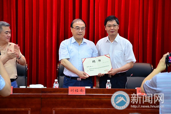 冯涛致欢迎词,并介绍了刘经南院士的简况。刘德顺介绍了我校最近30年特别是学校合并融合以来的发展概况,为刘经南院士颁发我校学科建设指导委员会顾问聘书并佩带校徽。刘经南院士在随后的答谢词中说到,很高兴学校给予学术顾问的称号,他会为曾经工作过的母校的学科建设多做一些贡献。对于学校这些年所取得的成绩,他给予了充分的肯定,并相信在多方的共同努力之下,学校会成为湖南乃至全国的一朵奇葩。