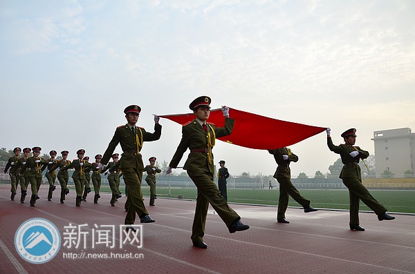 4月16日,每周一的早晨国旗班升旗仪仗队照常在新田径上举行升旗仪式,不一样的是今天的仪仗队不再是升旗手而是“护航者”。这天早上,国旗将由2011级马克思主义学院思想政治教育一、二班的17名同学升起。