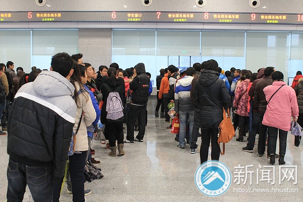 排了近二十分钟的队,文云辉走近售票窗口,询问着1月16日回家的票,售票人员告诉她们,目前可以通过12306铁道部订票网站或者电话方式预定4-70天的学生票,再凭身份证及学生证到车站窗口或代售网点索票,而售票窗口仍然只提前12天预售。没有买上票,王欢并没有很失落,而是和姐妹们参观起新修的湘潭站,在站前立起的花圃前,饶有兴趣地互相拍照留念。望着车站顶上闪着红色荧光的湘潭二字,王欢激动地说:“这是在湘潭我见过的最霸气的建筑。”