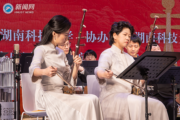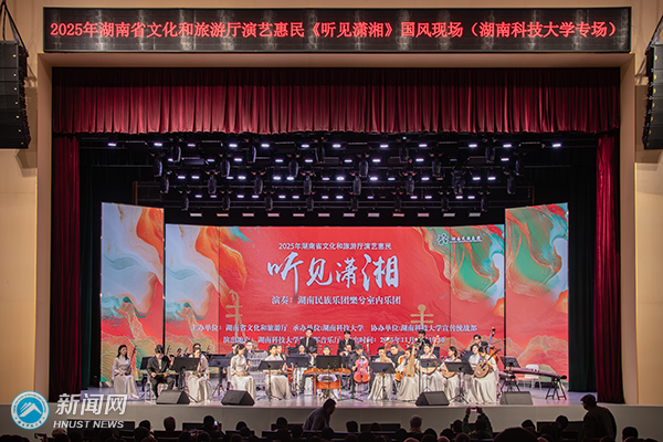 11月10日晚,由湖南省文化和旅游厅主办,湖南民族乐团创演的大型原创民族管弦乐《听见潇湘》湖南科技大学专场在黎锦晖音乐厅上演。