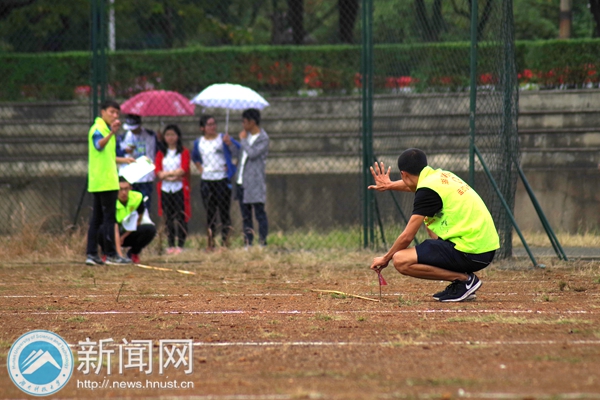 和李玉峰一样,大一新生谭旭也报名参加了田赛的裁判。在跳高场上,一次次调整横杆的高度,让他忙的不亦乐乎。“我这工作最重要的就是严谨、细致,别看它简单,可千万马虎不得。”谭旭语气轻快,颇为骄傲,“我们专业课学过这个,还会赛前培训,一般人也干不来。”由于跳高赛场设在北区旧田径场,观众较少,有点冷清,但谭旭还是表示明年想继续报名裁判,他认为这很培养自己的耐心与责任心。