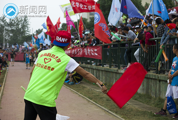 “我是裁判,内心却也是运动员。”今年大三的丁子杨还是像往年一样,戴着副墨镜,拿着发令旗,站在跑道中间挺得笔直。这是他第三年当裁判了,发令员的工作很是枯燥。但他还是热爱,不忍放手。在他看来,作为一个裁判,看比赛的视角和观众是不一样的,观众看的是一个热闹,而裁判更能看到运动员跑过一圈时的坚持和拼搏。