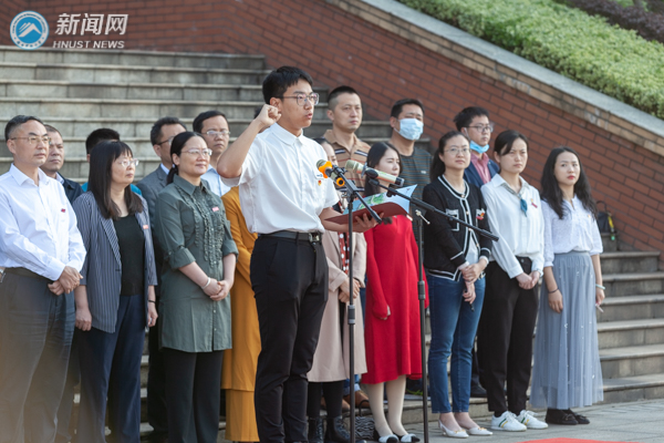 ▲领誓人潘浩然带领新团员进行入团宣誓仪式