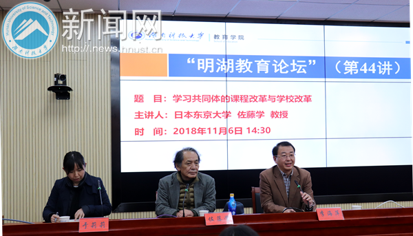 11月6日下午,我校教育学院“明湖教育论坛”第44讲“学习共同体的课程改革与学校改革”主题学术讲座在第八教学楼308学术报告厅举行。日本东京大学佐藤学教授担任主讲,教育学院100余名师生到场聆听。讲座由教育学院院长李海萍教授主持。