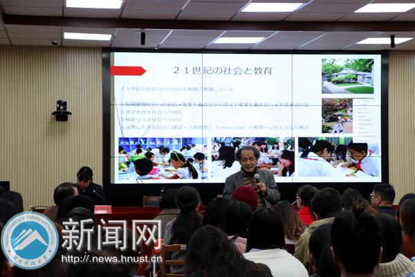 期间,佐藤学还结合自己多年来对世界各地学校的走访和研究,以丰富的图片和案例展示并分享了自己在学校改革中的经历和经验,还提出要在课程改革和学校改革中创建涵盖并融合尊严、信任、互惠、共同四大要素的学习共同体。在互动环节,佐藤学更是悉心为学生解疑答惑。