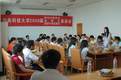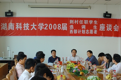 就业指导中心、组织部、团委负责人在会上介绍了到村任职学生、选调生、西部计划志愿者的具体情况。