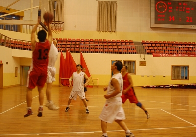 比赛紧张而激烈。市委机关篮球队的快攻打得十分坚决,我校教工篮球队的罚球命中率一直稳定,比分始终咬得很紧。曾震亚、刘新明、刘德顺、唐果宁等领导的精彩表现赢得了在场观众阵阵掌声。经过激烈的角逐,最终双方以48平握手言和。