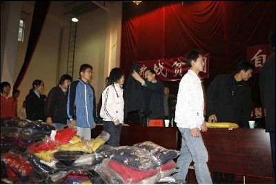 (为新生代表发放寒衣)