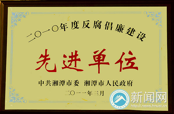 3月4日,在中共湘潭市第十七届纪委第七次全会暨全市反腐败工作会议上,我校被中共湘潭市委、市政府授予“2010年度反腐倡廉建设先进单位”荣誉称号,这是我校连续四年获此殊荣。