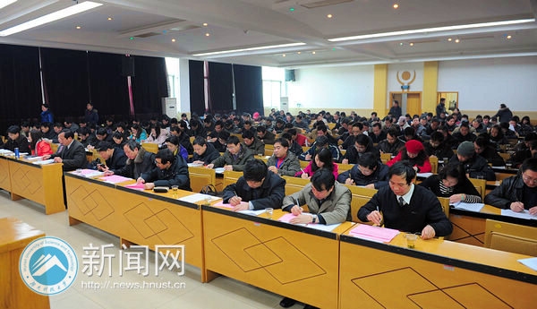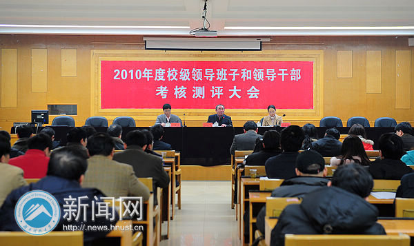 1月15日下午,我校2010年度校级领导班子和领导干部考核测评大会在交流中心五楼会议室举行。省委组织部干部四处、省委教育工委组织部相关负责人以及全体在校校领导出席,全体处级实职领导干部,市级以上党代表、人大代表和政协委员,民主党派主要负责人参加了大会。大会分别对学校领导班子及成员进行年度工作考核测评,对副校长朱川曲、胡石其任职试用期满进行考核,对学校2010年处级干部选拔任用工作进行评议。测评大会由党委书记田银华主持。