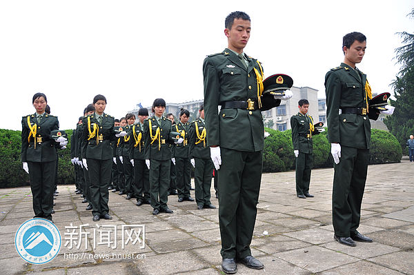 9时16分,祭奠仪式开始。庄严肃穆的国歌声中,仪仗队向国旗行以军礼。礼毕,队员们迈着沉重的齐步向烈士们敬献花圈。“先烈们,此时我为你们骄傲,他朝你们为我自豪!”仪仗队队员在班长萧礼良的带领下大声宣誓。仪式结束后,国旗卫士们在革命烈士事迹陈列馆参观,饱含深情地浏览着烈士们的生平事迹和遗物。“真到很感动,十分佩服革命烈士!”国旗卫士张茜说。