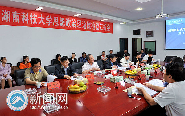 5月11日上午,在省教育工委思想政治理论课建设检查组组长、湖南大学党委副书记栾永玉带领下,省教育厅专家组一行来校检查思想政治理论课建设工作。检查汇报会在三教301会议室召开。校党委书记田银华,校长刘德顺,党委副书记、副校长刘建武,副校长曹晨忠、朱川曲出席。相关单位主要负责人及马克思主义学院全体院领导参加了会议。会议由田银华主持。