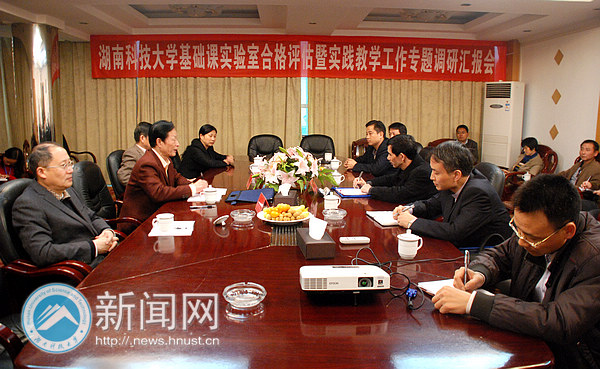 11月18日,湖南省教育厅实践教学专题调研专家组莅临我校,对我校基础课实验室进行合格评估,并对我校实践教学进行专题调研。副校长曹晨忠出席,党办校办、教务处、财务处、国资处等部门负责人,土木工程学院相关负责人、各教学院分管实验教学负责人参加汇报会。