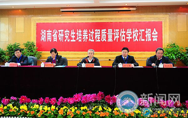 11月9日,湖南省研究生培养过程质量评估专家组莅临我校进行为期两天半的评估考察。上午10:50分,汇报会在学术交流中心五楼会议室举行,教育厅副厅长申纪云出席并主持汇报会。全体校领导、相关职能处室负责人、各学院相关负责人、学位点负责人、研究生秘书、研究生学院(部)全体人员与会。