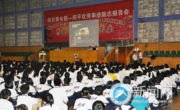 何平先进事迹报告会走进何平的母校——浏阳市第一中学时,浏阳市人民政府副市长张葵红来到现场并发表热情洋溢的致辞。她鼓励同学们以何平为榜样,学习她敢于担当的崇高品德,豁达乐观、阳光励志的人生态度,为实现自己的理想而不懈努力。紧接着何平又为醴陵一中和娄底三中等中学带去她的励志故事,将感动、担当和乐观向上的“向日葵精神”之种播向广大青年学子。