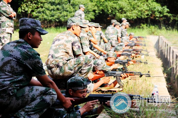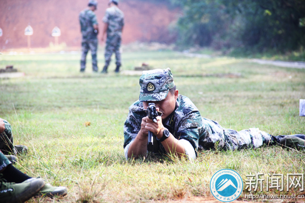 “卧姿准备!”一声令下,各靶位学员迅速趴下成卧姿,手握56式冲锋枪,“咔嚓!”上膛声短促有力,紧接着“嘭嘭嘭……”的钝音接连炸响,退出的弹壳也跟着四散飞溅开去。参加打靶的新生说:“打靶是给我们一个亲生体验使用军事武器的机会,让我们明白我们是一个可以使用武器的人,是一个有能力保护祖国的人,也让我们明白和平的重要性。”