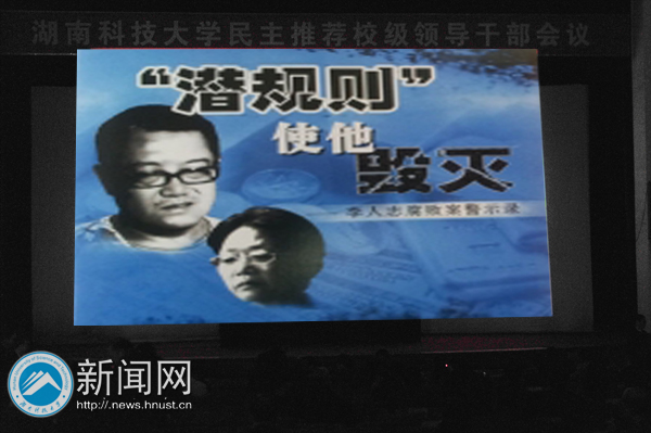 11月9日上午,我校组织全体校领导、全体实职处级干部、市级以上党代表和人大代表等240余人集中观看了廉政教育警示片《“潜规则”使他毁灭——李人志腐败案警示录》。