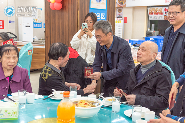 生日歌的旋律响起,大家围坐一起,欢快地聊着家常和生活近况。校领导依次为老寿星们送上生日慰问红包,转达学校的关怀与敬意,祝福他们“生日快乐”“身体健康”“福寿绵长”。