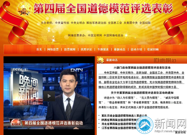 第四届全国道德模范评选表彰活动于今年4月,由中央宣传部、中央文明办、总政治部、全国总工会、共青团中央、全国妇联联合举办。活动旨在通过评选,在全社会大力学习宣传道德模范,充分发挥道德模范榜样作用,推动公民道德建设取得新的成效,形成实现中国梦的强大精神力量。