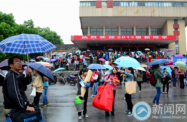 9月6日中午13时,学校正式开始新生电子注册。第一图书馆下,各学院迎新点一列排开,新生和家长们撑着伞有序地等待电子注册。独自一人从云南临沧来报到的段家达拉着小号行李箱,背着双肩包,站在队列中略带腼腆地和后面地同学交谈着。“这是我第一次出远门,但我相信我能照顾好自己。”出生于1995年的他对即将开始的大学生活充满信心。