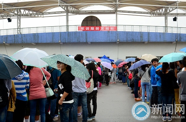 由于宿舍安排在四区,段家达有些遗憾没能在学工处坐上校园大巴去到北区看看。领取寝室钥匙后,他从新世纪美食城的迎新帐篷接过军训服及卧具袋。每接过一套物品,他都记得对工作人员说声谢谢,“学长学姐都是义务劳动,下着细雨,一批又一批新生都需要他们服务,他们更辛苦。”