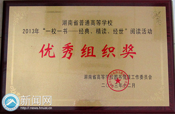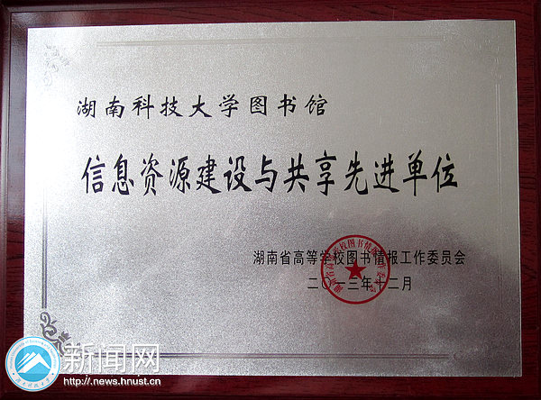 近日,从湖南省高等学校图书情报工作委员会传来喜讯,我校图书馆荣获2013年度湖南省普通高校信息资源建设与共享先进单位。
