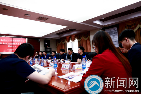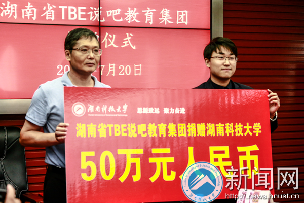 7月20日下午,湖南省TBE说吧教育集团为学校七十周年校庆捐赠50万元,捐赠仪式在立德楼601会议室举行。校党委书记刘德顺、副校长胡石其出席,TBE说吧教育集团董事长李晨,学校相关职能部门、机电工程学院主要负责人与会。仪式由招就处处长蒋利平主持。