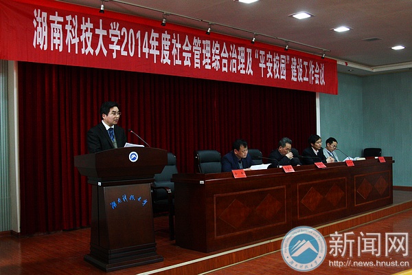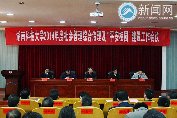 3月21日下午,我校 2014年度社会管理综合治理暨“平安校园”建设会议在三教101报告厅举行,校党委书记田银华、党委副书记朱川曲、副校长唐果宁出席,各机关处室,各教学院院长、书记、副书记、学工办主任,保卫处全体工作人员参加。会议由唐果宁主持。