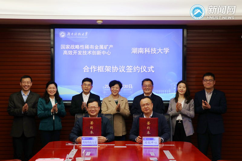 3月30日,国家战略性稀有金属矿产高效开发技术创新中心(以下简称国创中心)与我校举行合作框架协议签约仪式,围绕国家战略所需、高校企业所能,探索一体推进教育科技人才发展,携手打造教育链、人才链、创新链、产业链深度融合的示范样板。国创中心主任、国创公司党委书记、总经理何发钰,国创中心副主任、国创公司党委委员、副总经理张文斌,湖南省教育厅科技处处长曹敏,校党委书记蒋丽忠,校党委副书记谢慧,校党委委员、副校长周虎、尹风雨出席。张文斌、周虎代表双方签署协议。