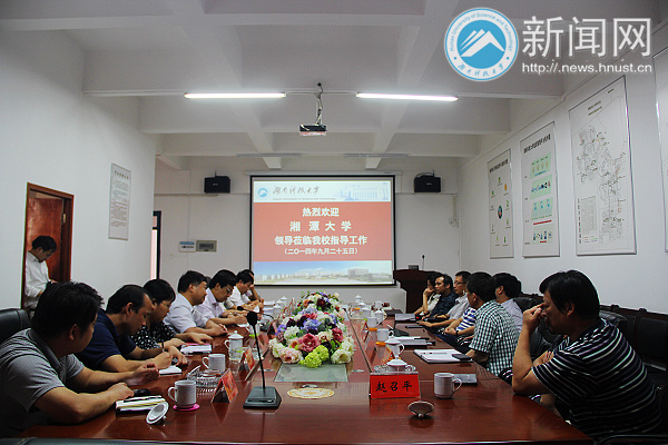 9月25日,湘潭大学副校长郑赤建一行来校交流后勤工作。我校副校长胡石其及相关部门负责人热情接待,并在新公寓13—14栋二楼会议室举行座谈。