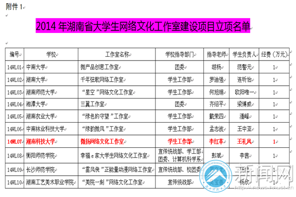 网络时代应如何面对挑战,加强大学生思想政治教育?12月31日,从湖南省教育厅传来喜讯,我校首个O2O思政教育平台——微扬网络文化室,经各高校组织申报、专家评审、省委教育工委审定,入选2014年湖南省大学生网络文化工作室建设项目立项。