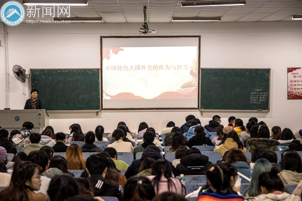 12月16日晚,副校长李琳在第八教学楼2-3教室以“中国特色大国外交的作为与担当”为题,开讲形势与政策。建筑与艺术设计学院17级建筑学专业、园林专业、工业设计专业以及城乡规划专业学生到场聆听。