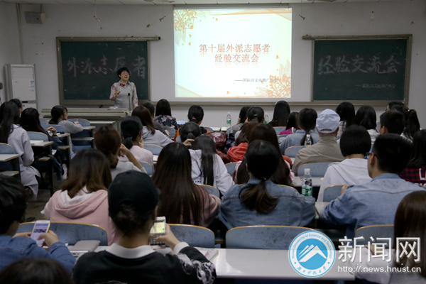4月28日晚,我校第十届外派志愿者经验交流会在外国语学院411教室举行。会上,四位外派志愿者依次上台讲述海外志愿经历,现场交流分享赴外学习、教学经验。
