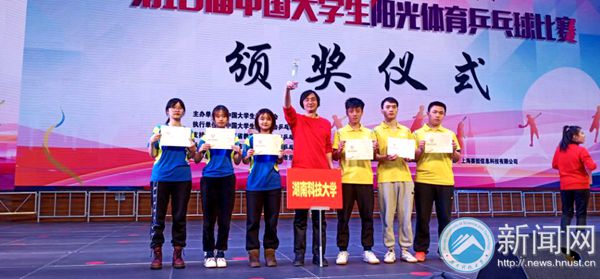 12月7日-8日,由中国大学生体育协会主办的第10届中国大学生阳光体育乒乓球比赛在山西省大同市举行。来自全国32所高等学校的32支代表队参加混合团体比赛。我校乒乓球队奋力拼搏,夺得团体一等奖,开创我校体育竞赛史上最高团体战绩,为学校争得荣誉。