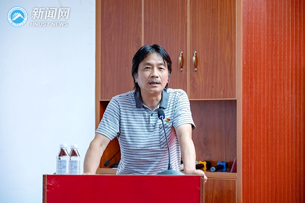 ▲谢慧作中心组学习总结发言并为全院教职工上党课