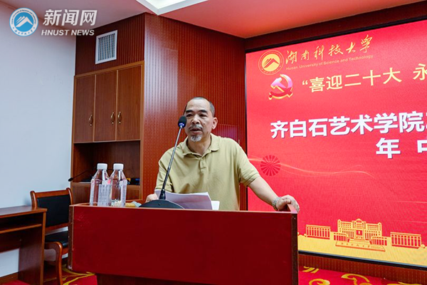 来到韶山会场,学院召开2022年度工作目标任务年中报告会。副院长王育霖、文牧江,副书记屠波,书记赵湘学依次向全院教职工汇报上半年工作进展情况。王育霖对学院科研工作完成情况、社会服务与公益项目的进展进行了总结与分析;文牧江总结了2022年度研究生招生录取和研究生培养等工作,列举了艺术硕士学位授权点目前存在的主要问题;屠波总结了学风建设的成绩,介绍了学生英语过级、就业的情况;赵湘学在做年中报告时,强调了党建引领各项工作的重要性,围绕本科教育、学科建设与人才队伍建设、专项工作取得的成果和问题进行了全面分析,对下一步学院需要完成的工作任务进行了布署。他还解读了学院《教师岗位聘任条件》《行政人员岗位考核分档办法》,号召学院每一位教职工都要明确自身的责任与义务,认真做好本职,努力做出成绩。谢慧对学院工作做了点评,在肯定成绩的同时,提出了四点期盼与希望:一是希望学院师生多出艺术精品;二是希望学院抓住发展机遇期;三是希望学院班子和老师团结一心;四是希望学院完成好学校交办的重点工作。