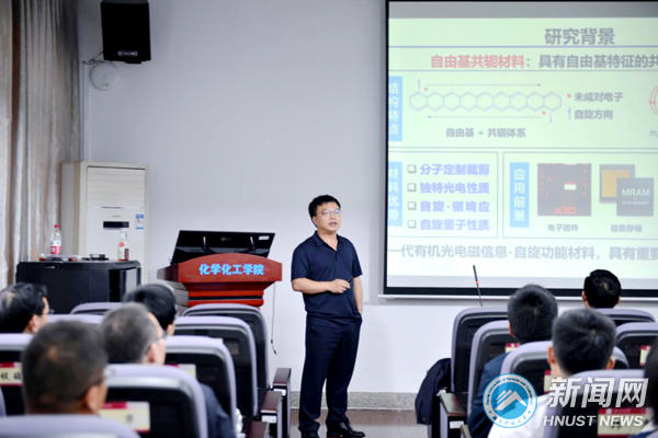 10月14日下午,国家杰青获得者、湖南大学曾泽兵教授做客湘江高端学术论坛,为师生作了题为“自由基共轭材料”的学术报告。论坛由我校化学化工学院和理论有机化学与功能分子教育重点实验室联合承办,化学化工学院院长周虎主持。