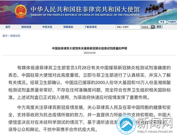 菲律宾卫生部表示,中国迄已援菲的2000人份华大基因和10万人份圣湘核酸检测试剂盒质量非常好,完全符合世界卫生组织相关国际标准。上述试剂盒已正式投入使用,为菲政府快速应对疫情发挥了重要作用。