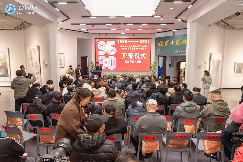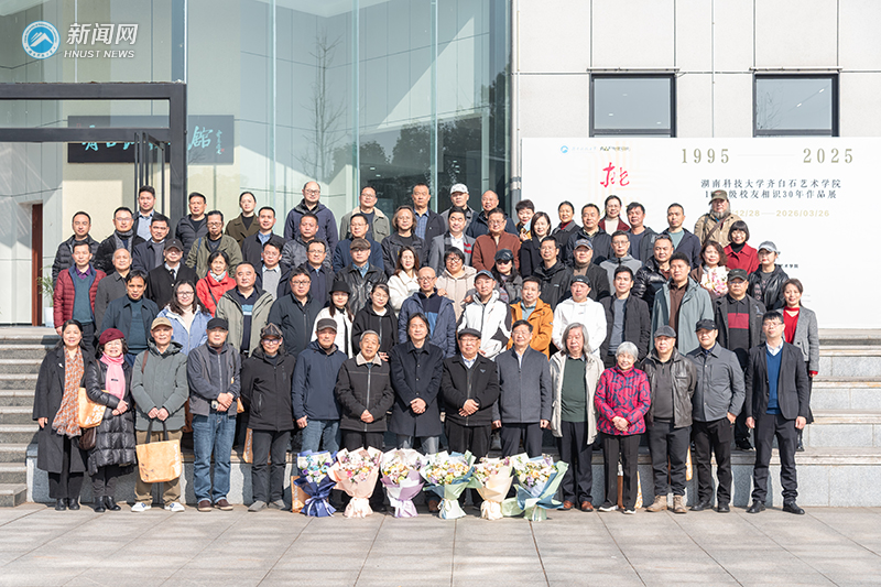 12月28日,“桃李芬芳:湖南科技大学齐白石艺术学院1995级校友相识30年作品展”在齐白石艺术馆开幕。校党委委员、副校长王卫军出席活动并宣布展览开幕。原湘潭师范学院美术系15名教师和30名95级校友,相关院校代表、社会各界人士近200人参加开幕仪式。