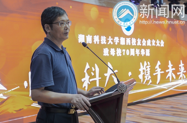 副校长胡石其为湘西自治州校友会授牌。校友工作办公室主任何正良宣读了校友总会《关于同意正式成立湖南科技大学湘西自治州校友会的函》的批文。湘西自治州校友会筹备组负责人就湘西校友会筹备工作做了简要说明,与会湘西校友审议并表决通过了《湖南科技大学湘西自治州校友会章程》,选举产生了刘汉勇为会长的湘西自治州校友会第一届理事会,湘西校友袁晋勇代表湘西校友做了声情并茂、感人至深的发言,长沙校友会会长邓向阳代表兄弟校友会表示了祝贺,并就长沙校友会的工作进行了简要介绍,贵州校友会会长杨胜周向湘西校友会赠送了牌匾。