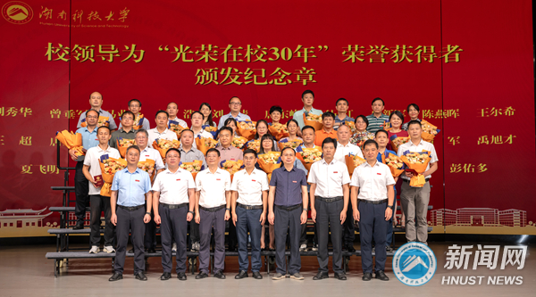 ▲为“光荣在校30年”荣誉获得者代表颁授纪念章