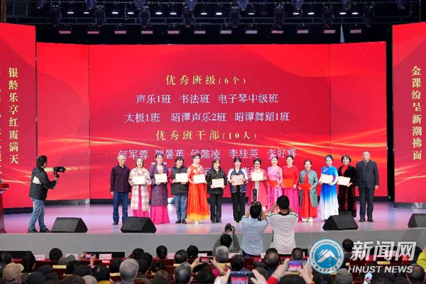 老年大学开展了2024-2025学年总结表彰暨教学成果展示活动,报告了2024—2025学年工作情况,宣读了2024—2025学年优秀教师、优秀班级、优秀班干部和优秀学员的表彰决定。优秀教师代表王莎莎、优秀班干部代表李桂英分别发言。与会领导为获奖个人和集体颁奖。