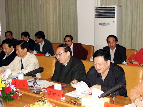 会上,张放平表示,省教育厅会认真考虑将我校列入全省5所重点建设高校的提议,全力支持学校申报博士点和芙蓉学者岗位设置、重点学科、重点实验室建设,建议对本科生学费标准进行微调,对于征地和申博的经费将在明年”教育强省”经费中给予一定倾斜;王柯敏表示,省科技厅积极支持我校申报博士点和重点实验室的建设,同时在科研项目方面要给予倾斜,希望学校紧密结合湖南新型工业化,重点面向全省14个重点产业,在申报课题时,要注意与这14个产业部门联合起来申报;杨世芳表示,发改委将积极支持学校基本建设,在经费方面给予优先考虑;刘宗林表示,国土资源厅将从管理的角度,督促湘潭国土资源管理部门做好征地拆迁服务工作;朱少中表示,在今年年底以前,县委县政府会积极做好被征地拆迁村民特别是一些钉子户的工作。与会领导一致表示,认真贯彻落实好梅书记的指示,积极支持湖南科技大学的建设和发展。