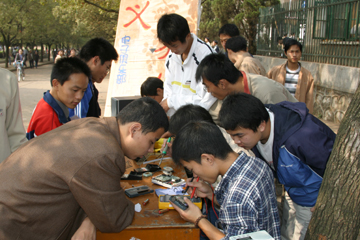 10月28日,在运动场的一角,电器义务维修活动正如火如荼地进行着。一天下来,共维修了包括电脑、电视机、VCD、电子辞典等在内的180余件电器,不仅服务了广大师生,也为当天开幕的第二届秋运会献上了一份厚礼。