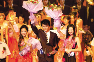 孙萌(右)获2006“新丝路”湖南模特大赛总决赛女子时装组冠军 ( 付希华 摄)
