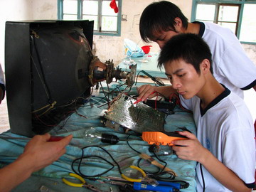 为让灾区人民早日重新使用电器,志愿者的维修组成员常常加班到凌晨二、三点。走进他们的工作间,你可以看到屋内堆满了各式各样的电器,电视、VCD、DVD、电风扇……志愿者们就蹲在这堆电器里埋头苦干,时而看看书籍,时而相互谈论、时而冥思苦想。在房间的空闲处,随地摆放着六床席子,他们一天24小时除了吃饭外都在这里和电器为伴,平均每天仅休息4、5个小时。高强度的工作量却让志愿者心中有着说不出的成就感,“能够为灾区人民办点实事,是我们最大的快乐”。他们热情的态度和良好的技术得到了当地村民的肯定,仅仅三天的时间他们就收到了电器120余件。目前,除了三台需换大型主要配件的电器外,在已修的106台电器中已修好103台,成功率高达97%。